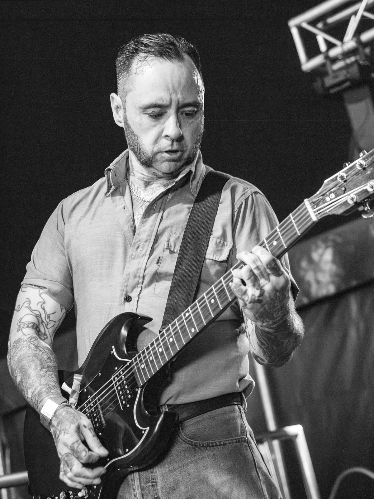 Our prayers were answered when the band took to the stage, kicking things off with the iconic anthem “A Decade Under the Influence”. Instantly reigniting that emo streak in many, the crowd erupted in cheers of glee, with the band lapping up the praise and imbuing it right back into their set. Progressing through a mixture of material spanning their entire discography, one thing did quickly become clear, however: there was a clear preference for the band’s earlier material.